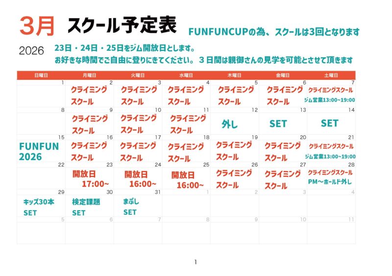 3月【スクール&ジム予定表】